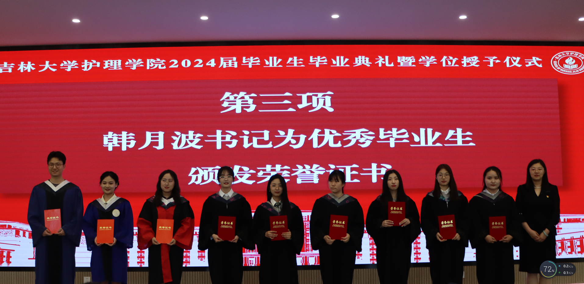 “优秀毕业生”称号的学生名单;党委书记韩月波为优秀毕业生们颁发荣誉证书。毕业生代表向母校赠送纪念品,表达对母校的不舍与祝福;包你发