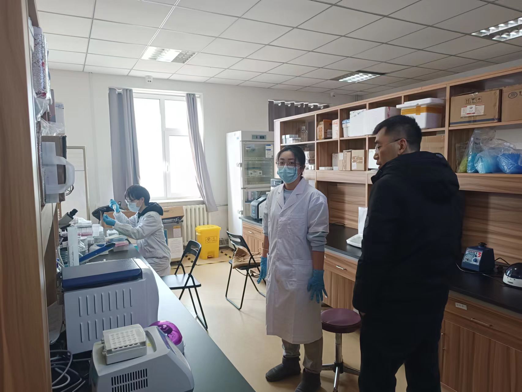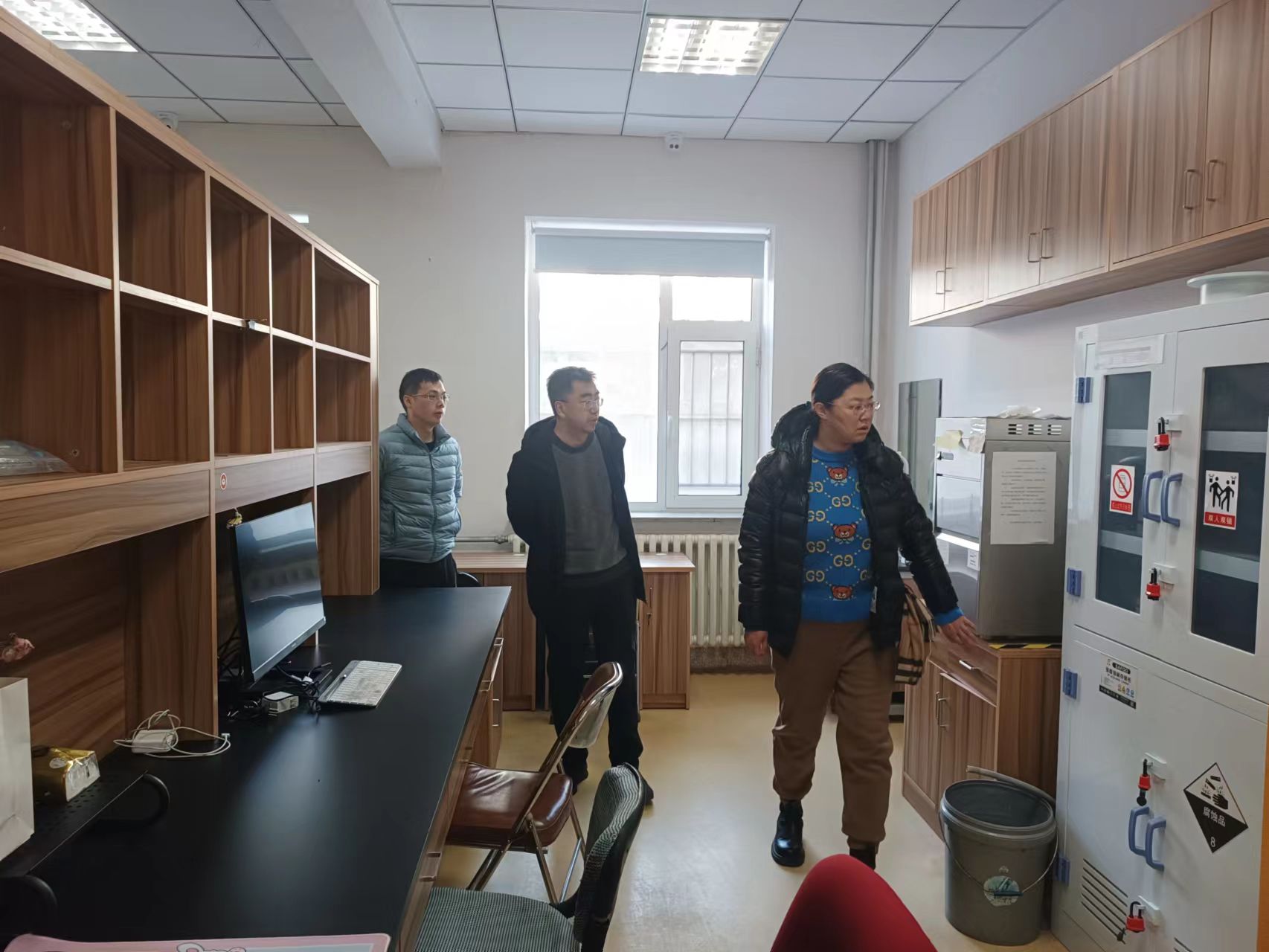 假期实验室管理相关要求。走访过程中,对办公室的电源与水源等进行了检查,同时重点对含有易燃易爆物品及其他危险源的实验室进行全面排查,明确安全责任,落实安全措施。结合1月20日由李峰副院长带队,实验中心主任张秀英、科研实验室助理张美双对包你发