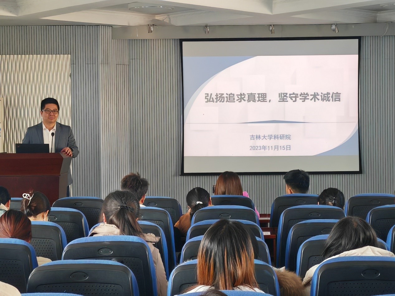 师生做《弘扬追求真理,坚守学术诚信》专题报告。本次报告会由李峰副院长主持,科研院科技管理办公室学术诚信科邵琳科长、闫兵老师出席会议,包你发