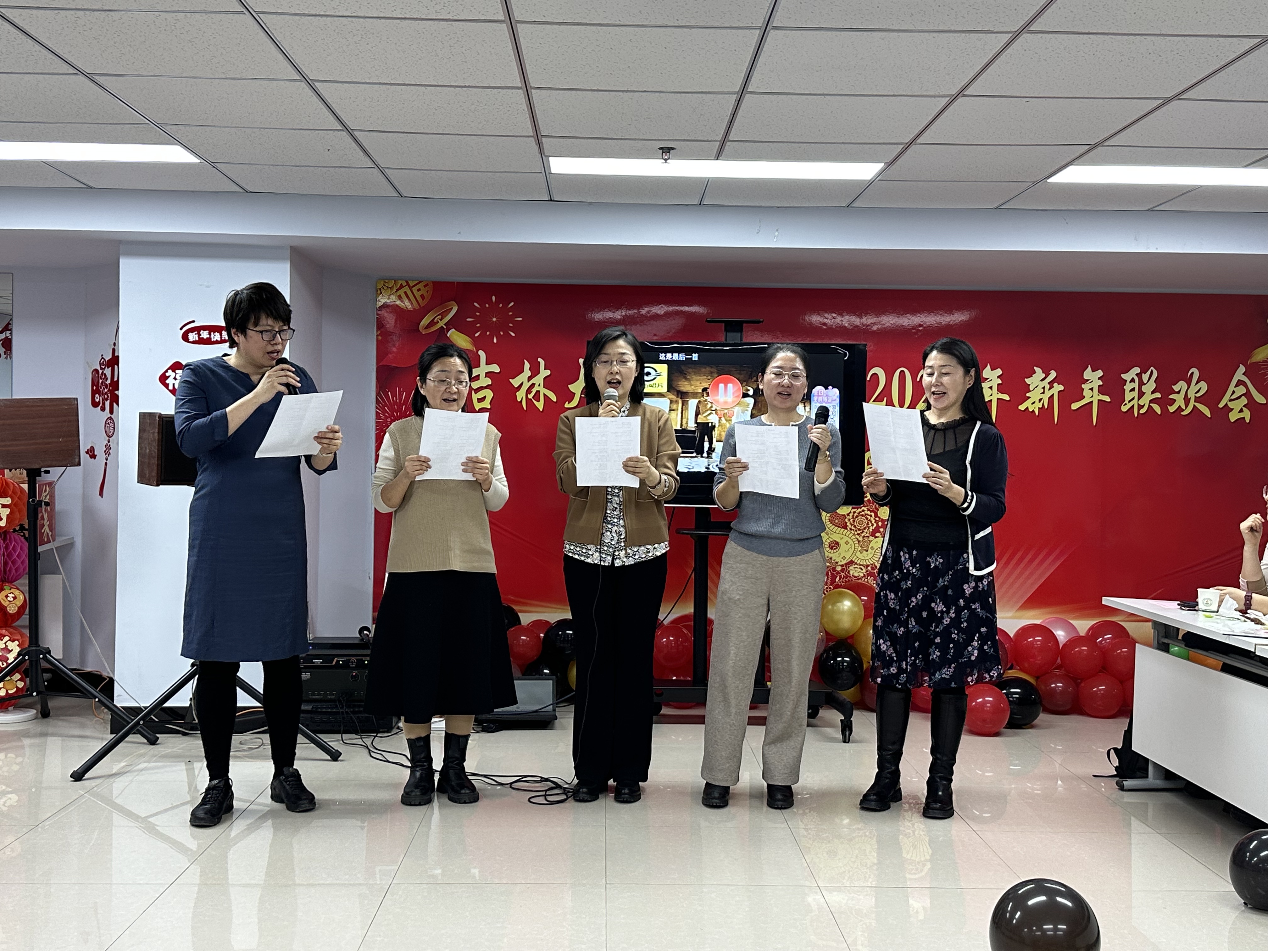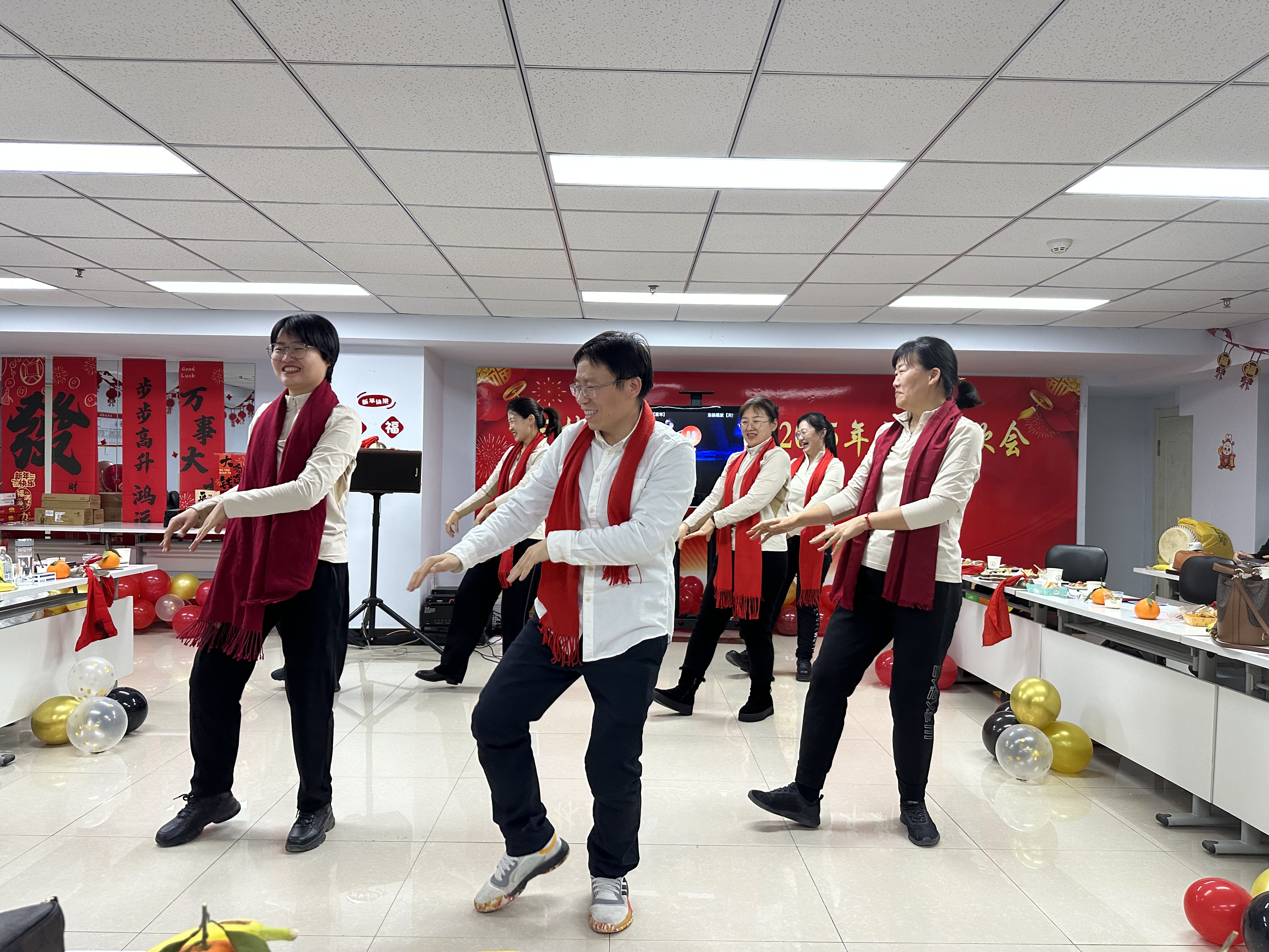 在热烈的氛围中,新年联欢会正式拉开帷幕。开场舞《上春山》以灵动的身姿、轻盈的步伐,瞬间抓住全场目光;党办院办教学科研办等联合出演的小品《我要上班》凭借精湛演技、幽默台词,引发台下阵阵欢笑;外科护理教研室诗朗诵《新年,你好!》用饱满情感抒发新年期盼与祝愿;朱晓玉老师的独唱《Five Hundred Miles》凭醇厚嗓音诠释乡愁与向往;康复治疗学教研室的《春天序曲》将融入工作总结的“三句半”与舞蹈串烧巧妙结合,创意赢来掌声不断;人文护理等科室的歌曲串烧《童年》《明天会更好》将纯真回忆与美好期许完美融合;对唱《你是我心内的一首歌》借默契配合为联欢会添浪漫色彩;实验中心的小合唱《如愿》以优美旋律唱出对生活向往与感恩;基础护理教研室等小合唱《相亲相爱一家人》用深情彰显包你发