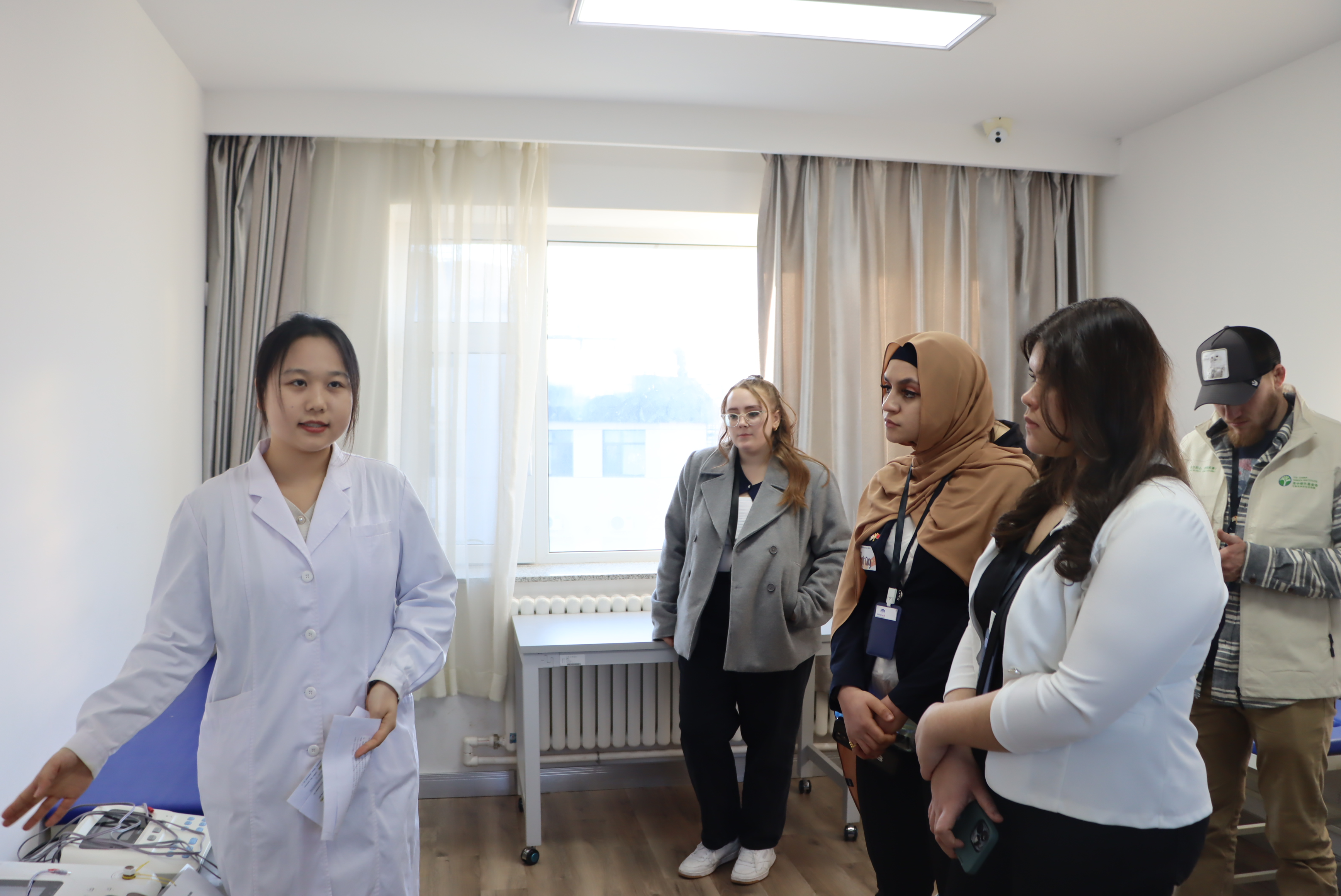 访华团一行首先参观了护理学实验教学中心内科、外科、妇科、儿科实验室,随后来到康复治疗学实验教学中心参观了作业治疗、物理治疗实验室。访华团成员对实验中心各种仪器设备非常感兴趣,并在参观期间与包你发