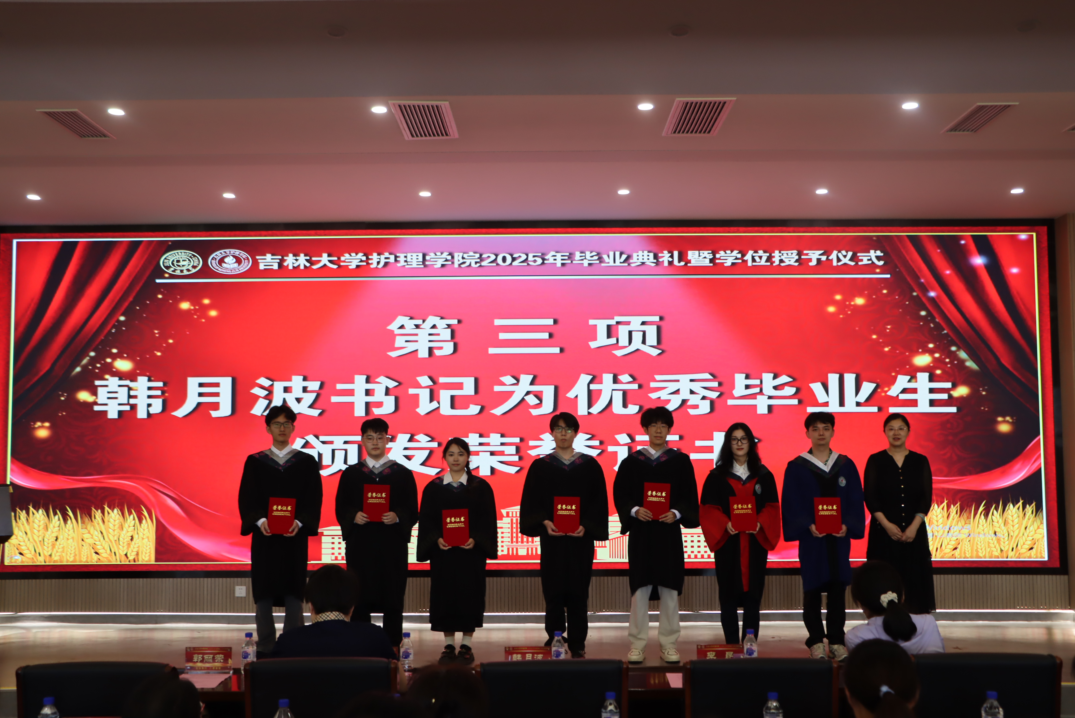 “优秀毕业生”称号的学生名单。党委书记韩月波为优秀毕业生颁发荣誉证书。