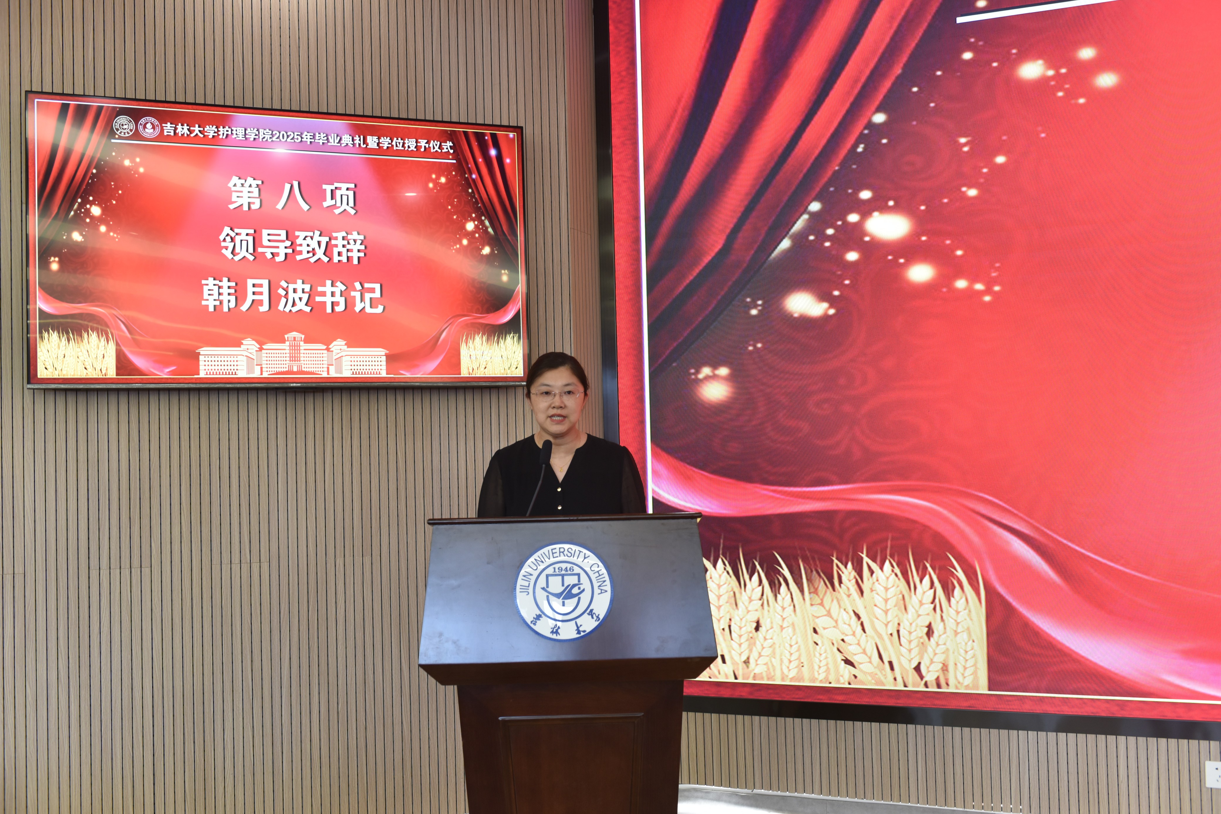 的成长历程,并表达了对全体毕业生的殷切希望和真挚祝福:一是希望同学们坚定理想信念,坚守使命初心,以奋斗之我、青春之我,担起历史赋予青年一代的使命;二是希望同学们秉承白医精神,践行医者仁心,不断用实际行动擦亮吉大护理的金字招牌;三是希望同学们矢志不渝奋斗,永葆干事恒心,以守正创新、服务大局的自觉意识实心干事,用行动诠释护理人和康复人的责任与担当。