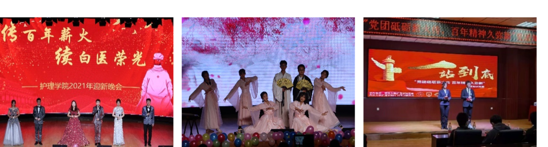 秉承立德树人根本任务,以习近平新时代中国特色社会主义思想为指导,以弘扬和传承白求恩精神、南丁格尔精神为己任,以丰富多彩的校园文化活动和社会实践活动为载体,在校园文化建设和学生综合素质培养方面取得优异成绩。持续开展纪念5·12国际护士节系列活动、迎新晚会、创新创业系列讲座、文化播讲团、歌手大赛、女生文化节、寝室文化节、先锋论坛辩论赛等校园文化活动;依托“天使心”职业道德教育基地、天使志愿者协会为包你发