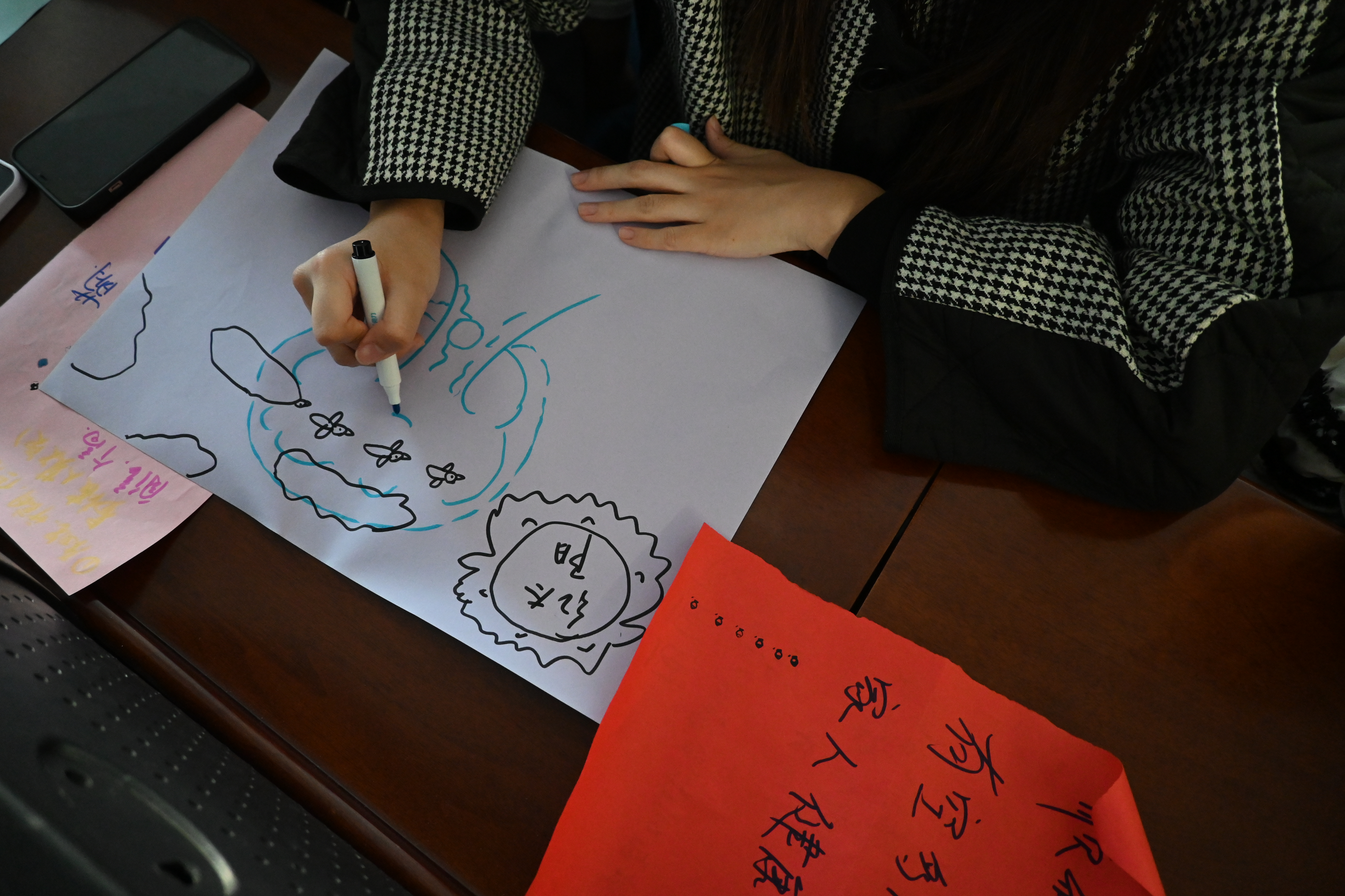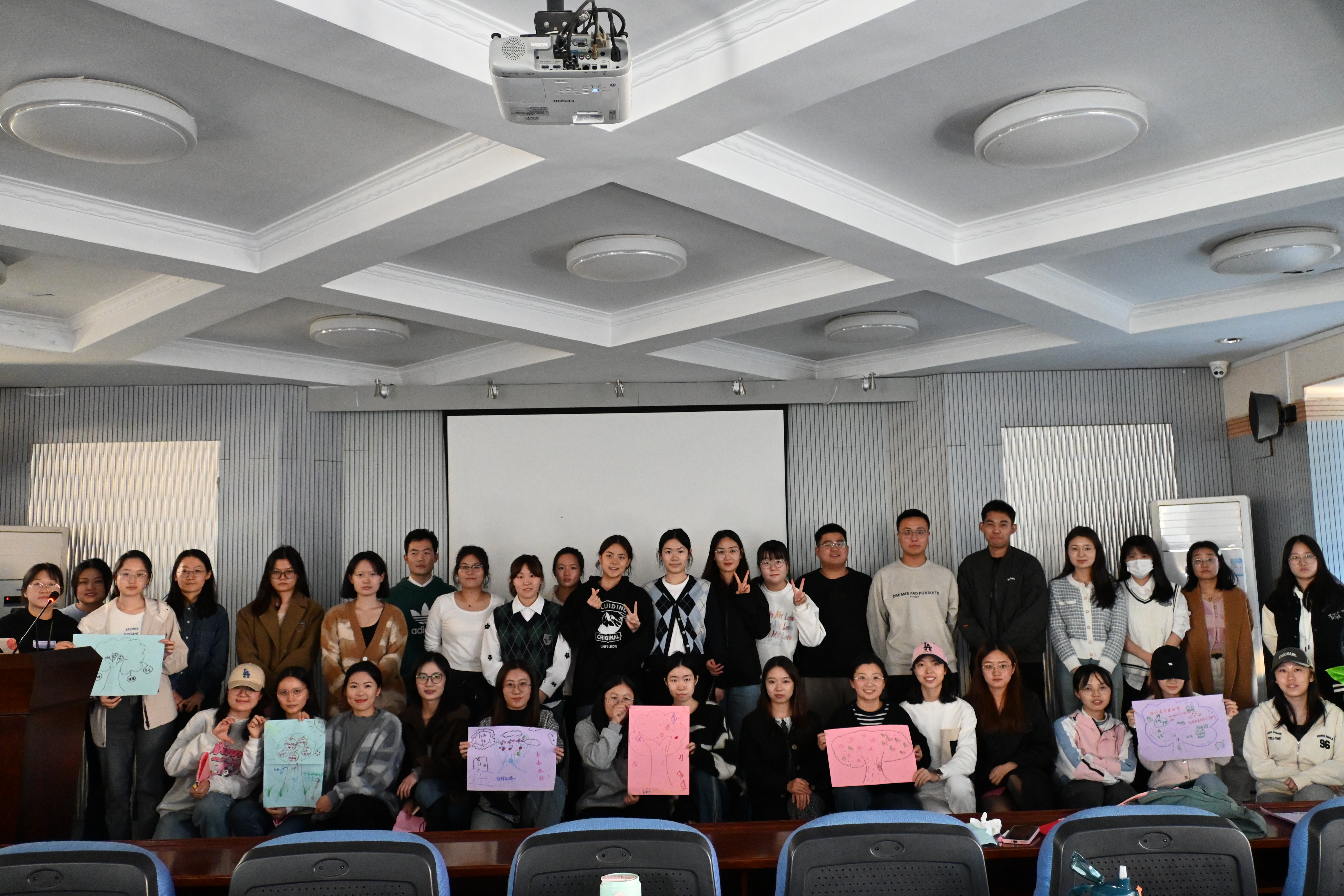 最后,活动进入结束阶段。主持人为同学们发放彩笔、画纸,请同学们尽情发挥想象力,共同绘制一幅团体树,作为组内凝聚力的具象表达,让同学们体验到合作的愉悦。之后,所有同学与团体树拍下一张合影,活动在欢声笑语中落下帷幕。