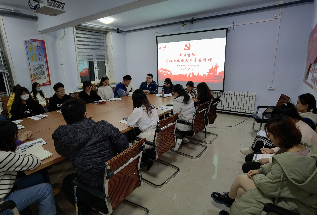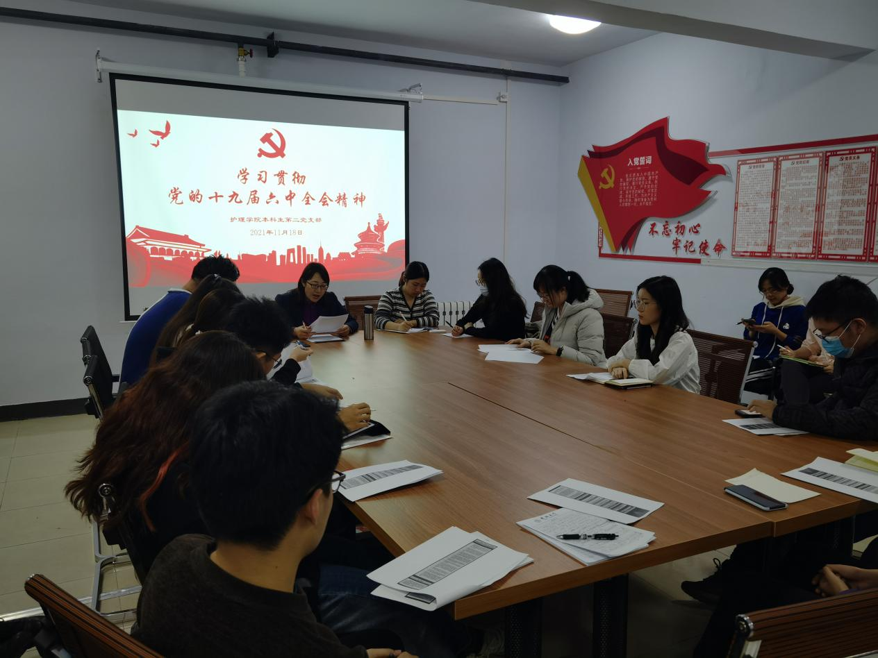 本科生第二党支部于11月18日晚在学生党员活动室召开了学习贯彻党的十九届六中全会精神会议。包你发