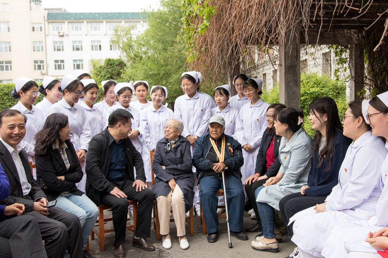 5月13日上午,党支部共建活动的启动仪式暨“新老党员手牵手,传承时代新使命”抗日战争、解放战争老护士讲述白医历史活动在包你发