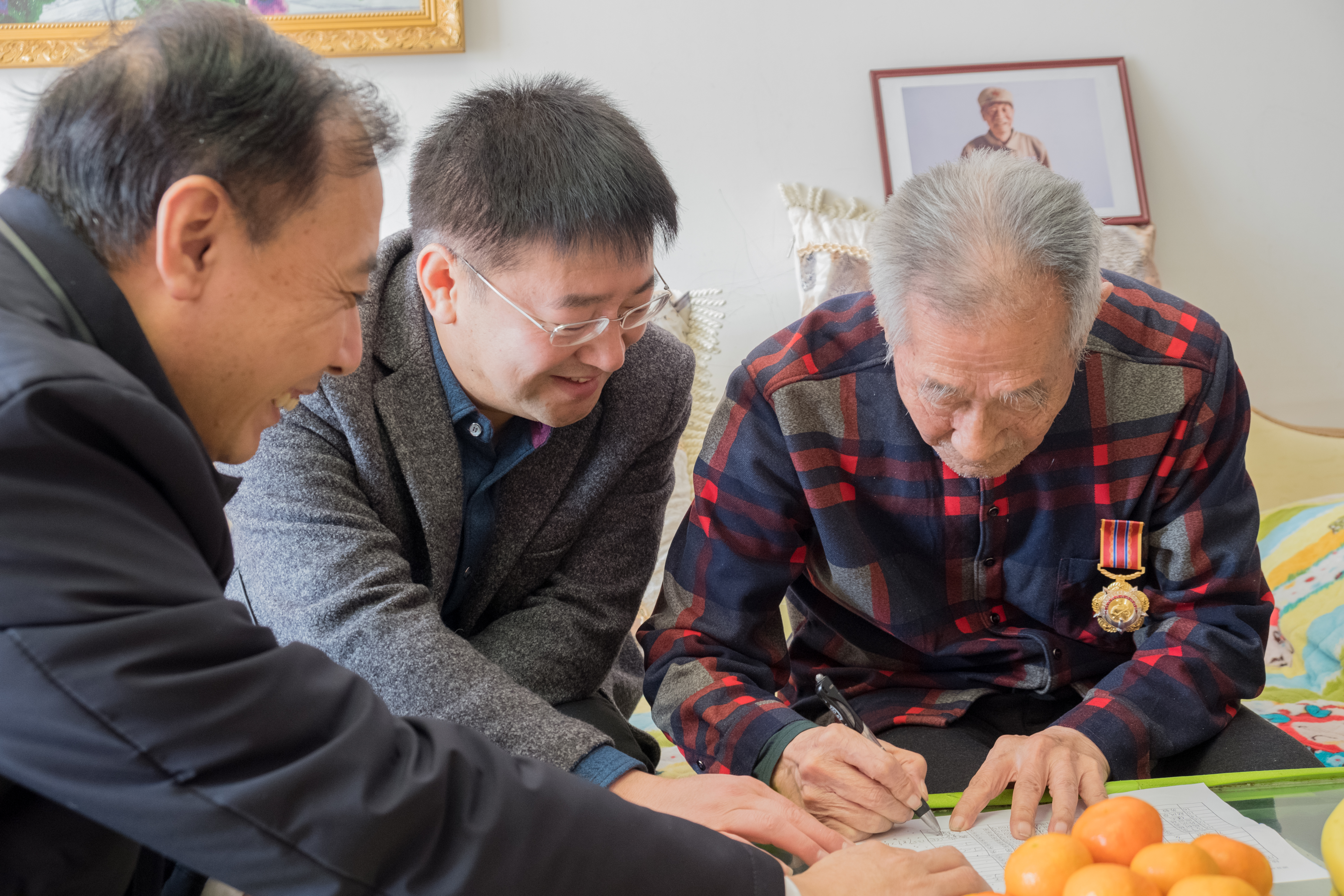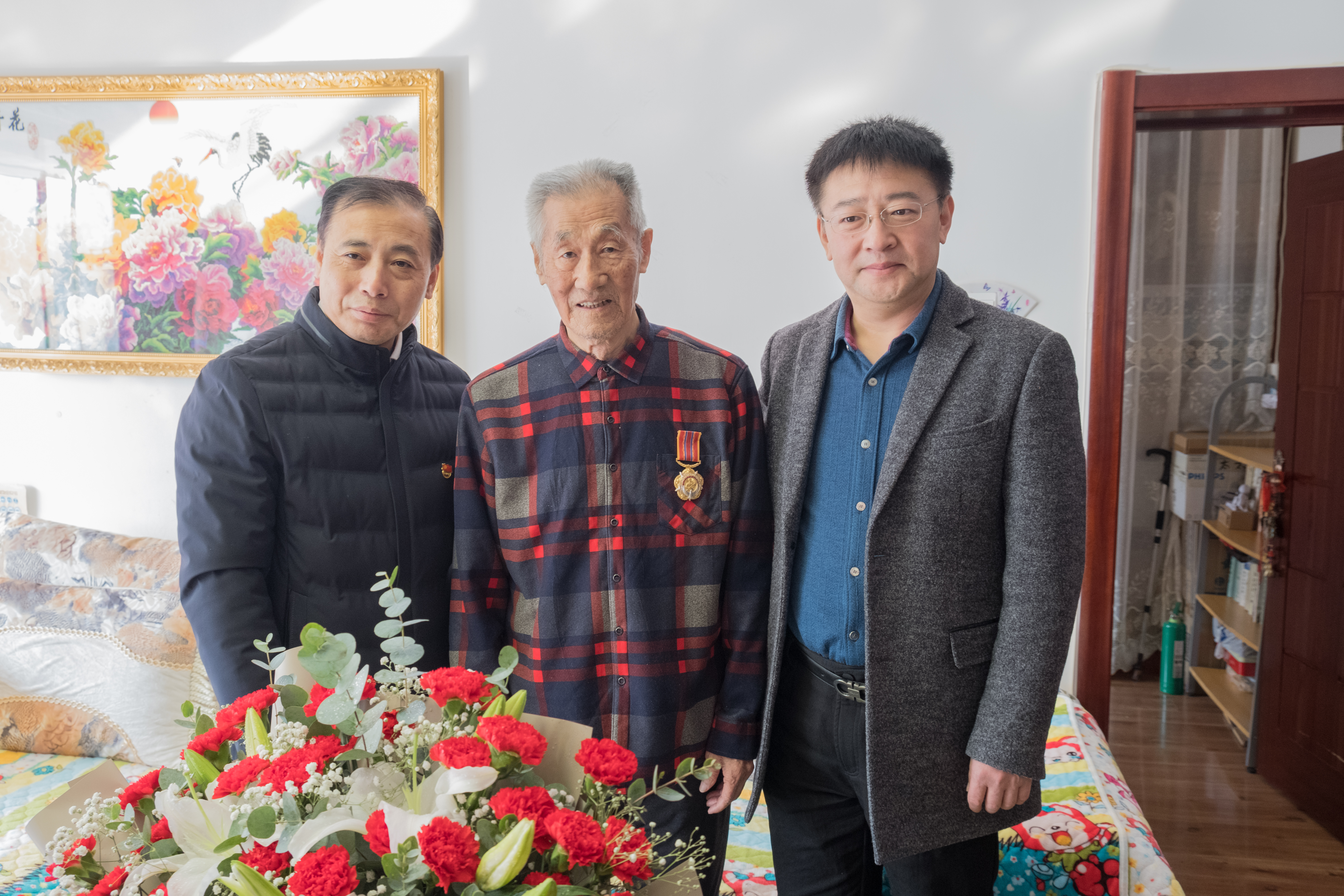 党委书记席海涛老师和新民校区离退休办公室主任陈彦强老师的带领下,看望抗美援朝老兵赵风章同志。赵风章同志年轻时曾是白求恩医科大学的一位老师,87岁的他见到意气风发的年轻后辈们倍感高兴。在热烈地交流过程中,赵老师同大家分享了年轻时参军、参加抗美援朝战争的经历和在白医大执教时的种种故事。听完赵老师的经历,同志们百感交集,敬佩之情油然而生。他不仅是一名爱好和平保家卫国的战士,他也是三尺讲台上辛勤的指路明灯,他更是年轻一代应当学习的英雄榜样。交谈的最后,赵老师予以年轻党员殷切的嘱托,他鼓励学生党员们积极向上,工作学习中敢于直面困难、勇往直前。青年一代有理想,有担当,祖国便有了希望,同志们纷纷表示要在实践中不断提升自我,为祖国的和平与发展努力,为实现伟大复兴中国梦不懈奋斗。