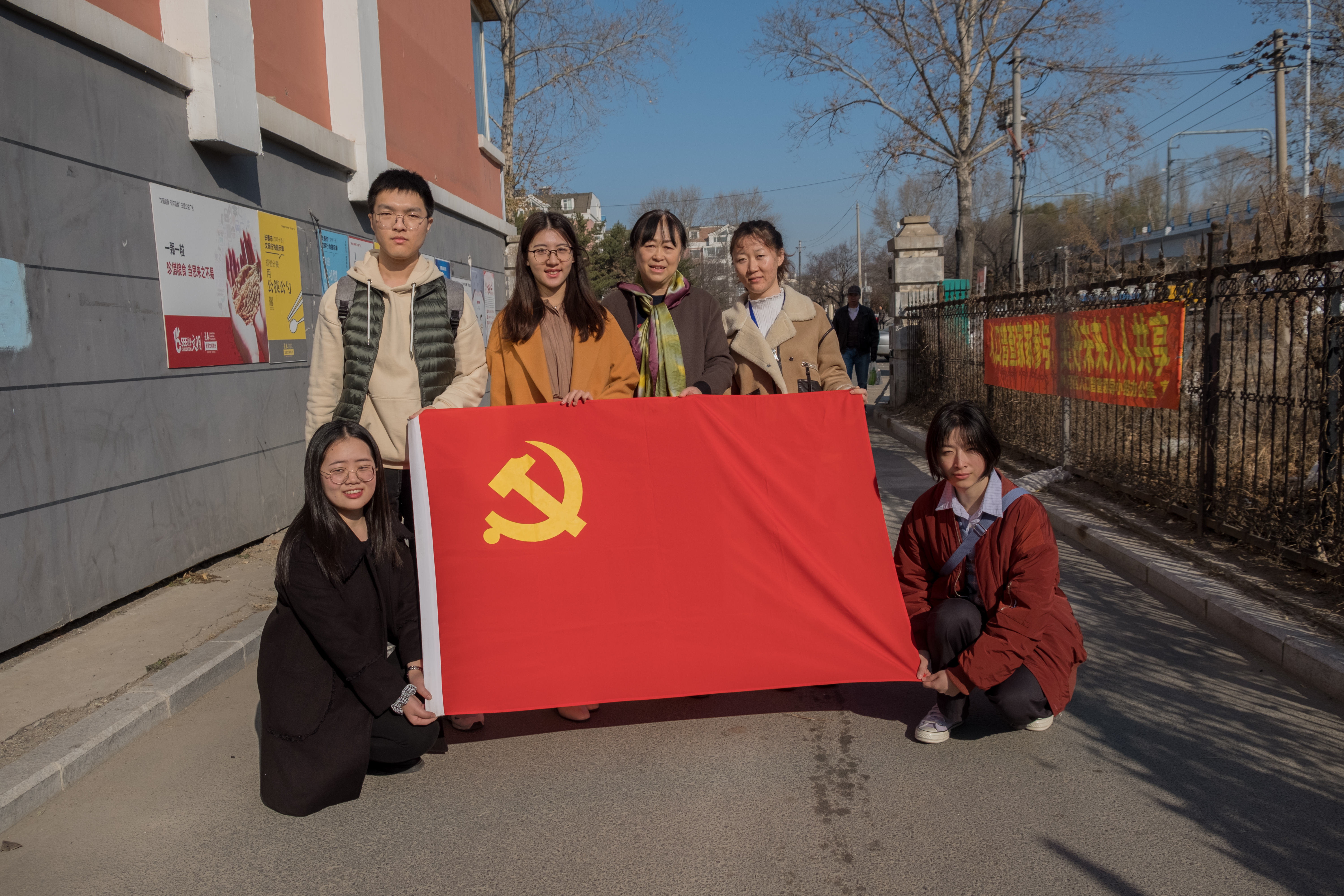 本科生第一党支部李亚琴老师、刘宇飞老师同部分学生党员,与教工党支部党员一起在包你发