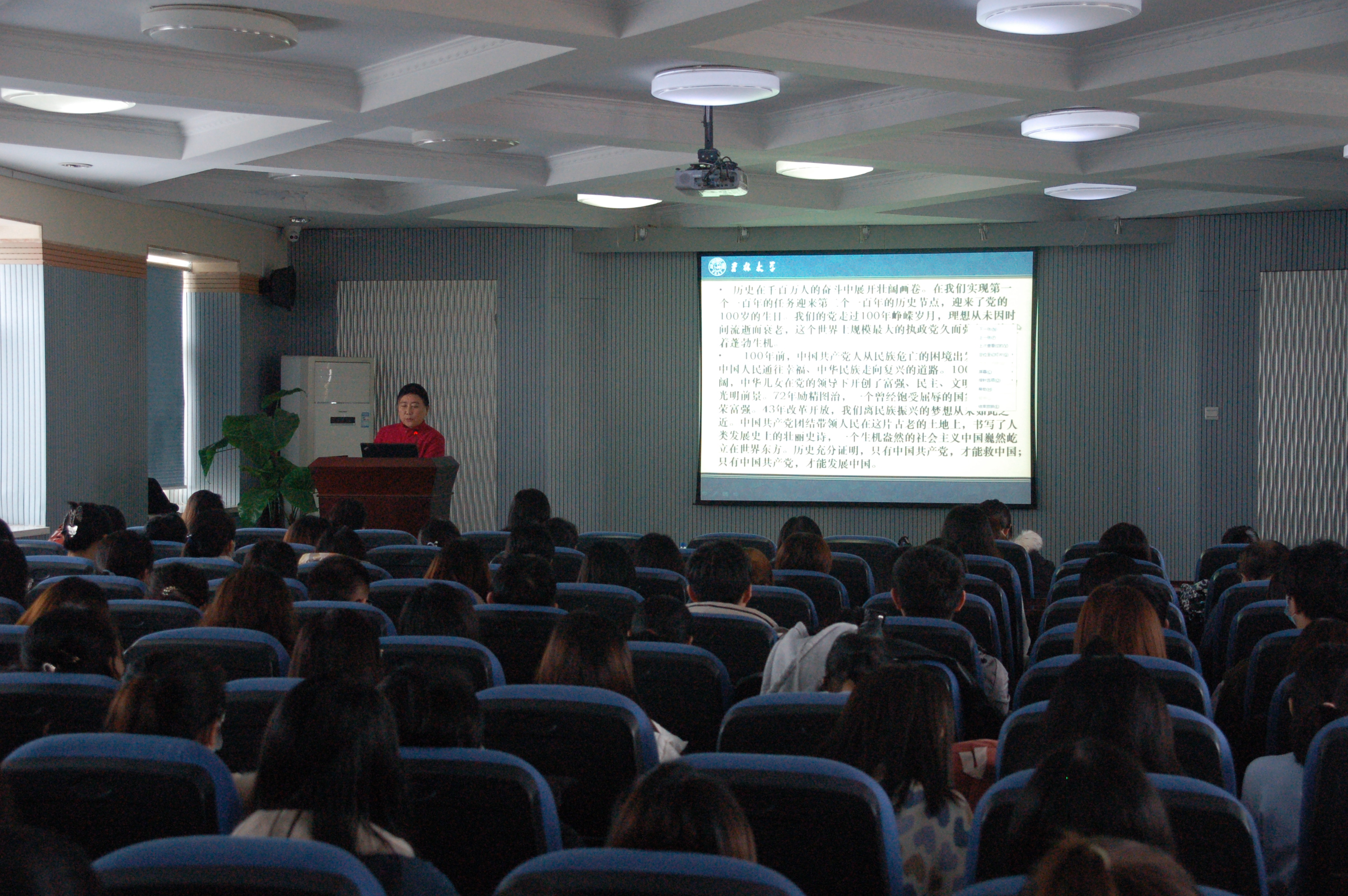 讲座之后,韩月波书记总结讲话。首先,她感谢傅菁林教授激情澎湃的演讲给师生带来一次难得的学习机会,通过学习回顾中国共产党百年光辉历程,我们深感自豪,备受鼓舞;展望新的历史使命,我们信心百倍,斗志昂扬。包你发