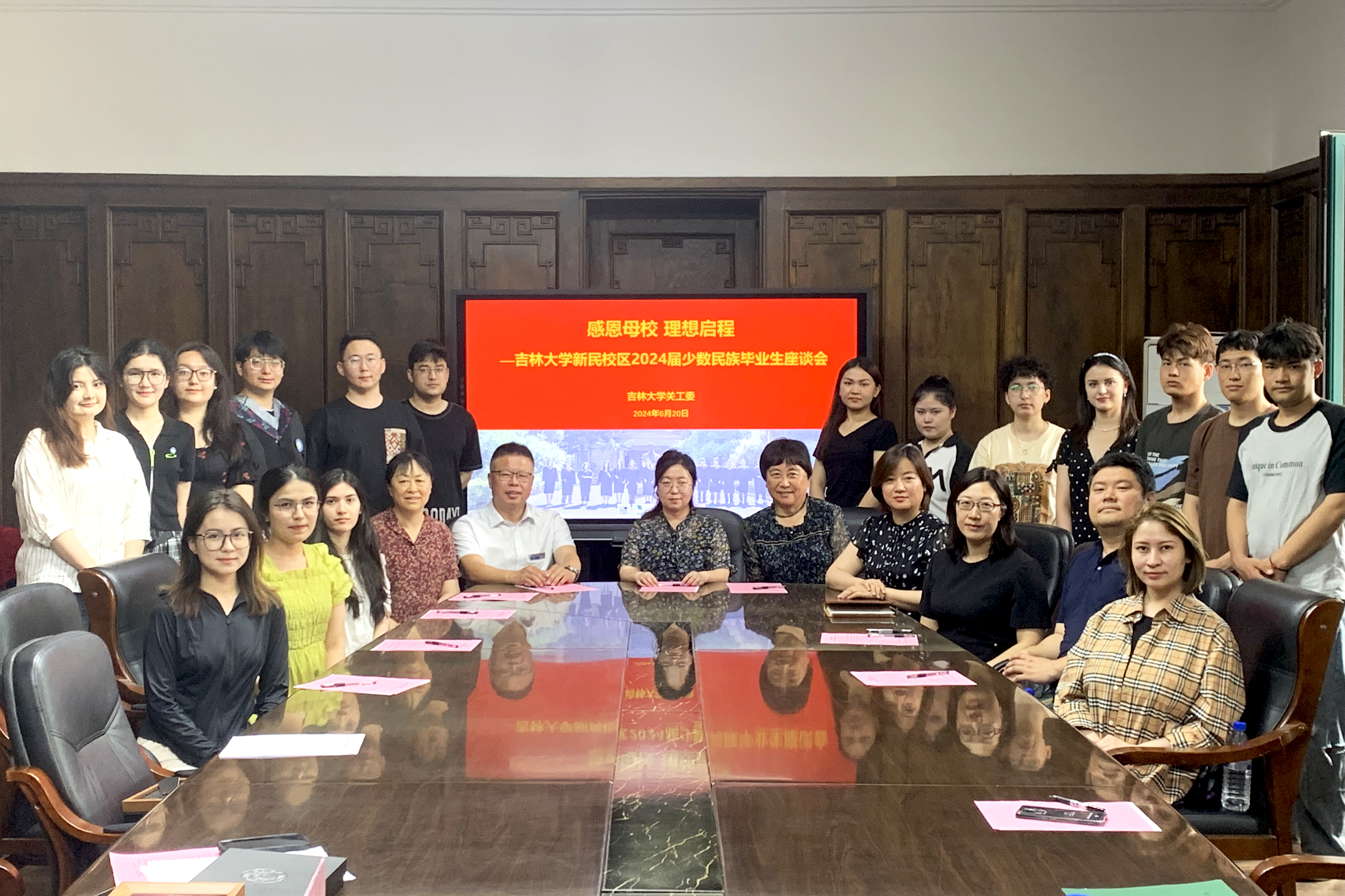 关工委联合新民校区各二级关工委共同召开“感恩母校理想启程——新民校区2024届少数民族毕业生座谈会”。离退休党委副书记、关工委常务副秘书长王欢,新民校区学生办公室主任兼学生就业创业指导与服务中心副主任吴剑锋,新民离退休党总支书记丁亚春,新民校区关工委工作指导组成员傅菁林、李亚琴,公共卫生包你发