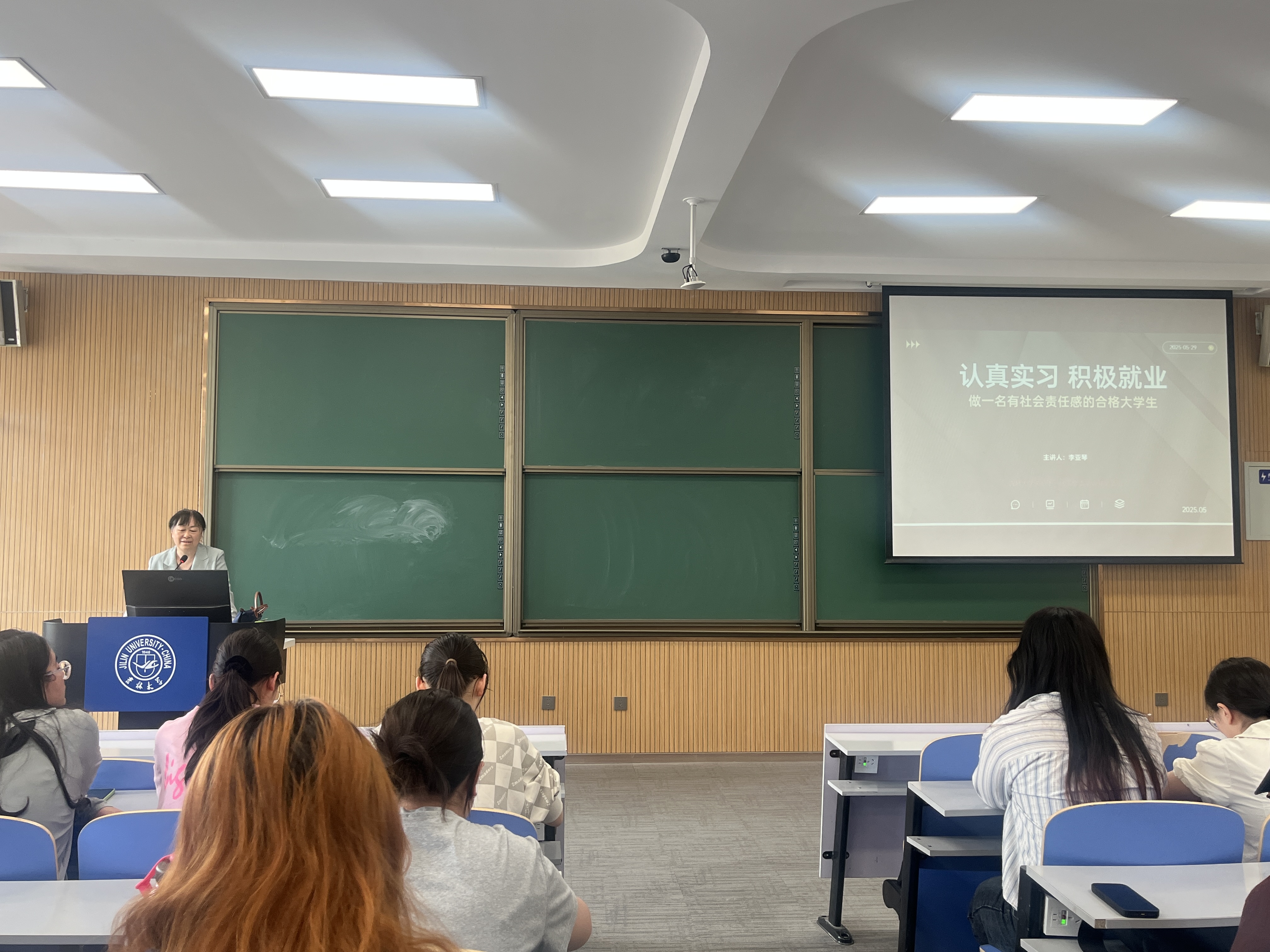 声誉、社会稳定的高度出发,鼓励同学们积极进行职业规划,要勇于克服求职过程中遇到的困难与挫折,善用社会支持系统,积极投身就业,为社会发展贡献应有力量。同时,李亚琴老师分享了对习近平总书记提出的新质生产力的思考与理解,鼓励同学们应积极关注国家时政热点、主动了解就业政策等内容,新时代要积极抓住时代机遇,迎接新的挑战,与时俱进,开拓进取。