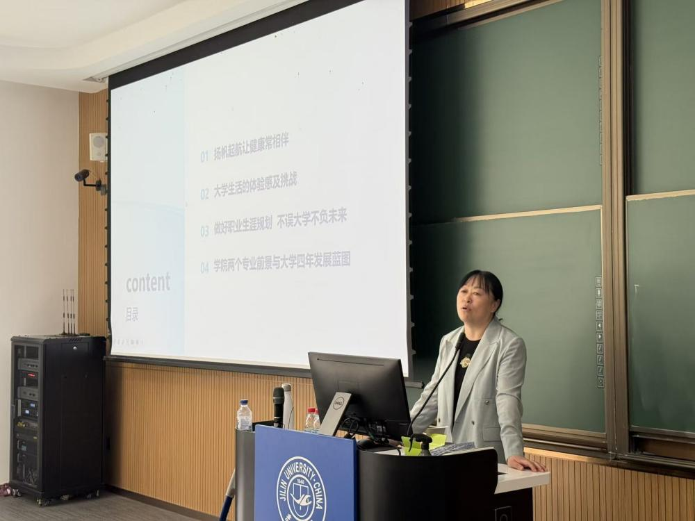 的发展史,并分别从社会认可度、毕业生工作情况、学术地位、就业前景等方面展开论述,让同学们对专业的认识程度进一步提高。她还鼓励同学们绘制大学四年阶段性目标图谱,从适应奠基、探索定向到提升突破、规划落地,实现稳步成长。